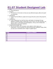 The purpose of this experiment is. 01.07 student designed lab 1. I think that the different angles will change the place where the projectile lands 4. I predict that different angles will change the location where the projectile lands. 01.08 student lab report 9/11/2020.